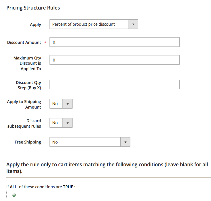 Here you will set all of the Pricing Structure Rules – this will dictate how your rule operates.