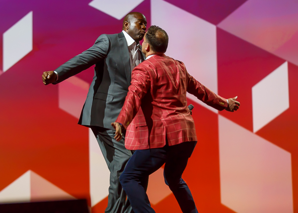 … but not before doing a vertical jump and chest bumping with MC and host, Jamie Clarke: