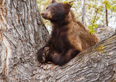 This evening, a few houses up from ours here in south Boulder, there was a bear hanging out in a neighbor’s tree.