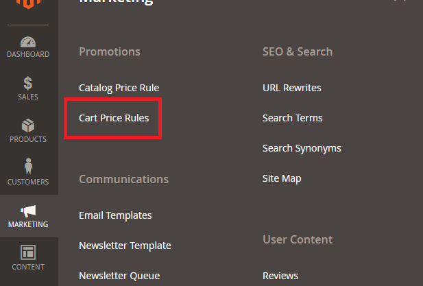 Coupon codes are a Cart Price Rule that can be created to apply a discount for a fixed amount, percentage, free shipping, and several other scenarios. In this scenario, we will be creating a coupon code that takes a percentage off items in the cart. The discount will be automatically applied to the cart after the code has been entered in by the customer and all specified conditions of the promotion rule have been met. While this article explains how to create