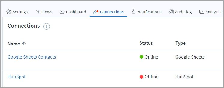 Check the connections for each of the endpoints. A red dot next to a connection indicates it’s offline. Edit the connection to see if any credentials or other settings need to be adjusted or re-entered.