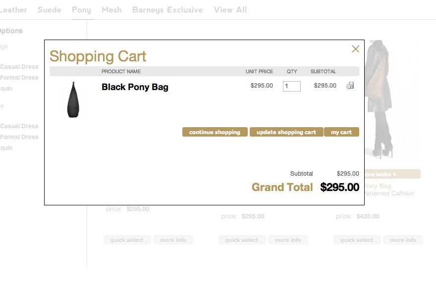 7. On the same display, the Quick Select is an Ajax pop up that allows you to add the product to your cart without going to a new page.