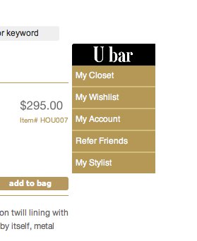 4. Once the user is logged in to their account, or sets up an account, you’ll see the Ubar custom feature along the right side of the page. This menu follows you around the page as you scroll if your browser is at full-width. 5. The UBar includes the mystylist link which is an Ajax popup for recommendations for that user.