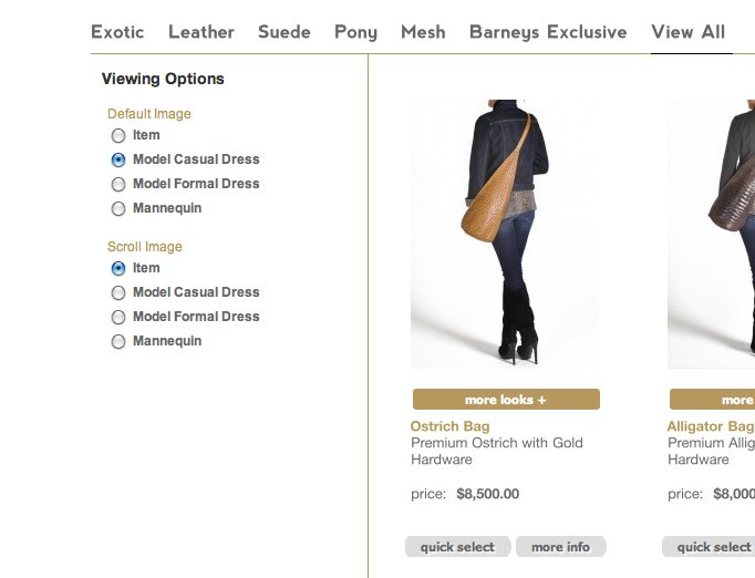 6. From the Category display, the More Looks link is an Ajax pop up that let’s you view larger images and scroll through all the options.