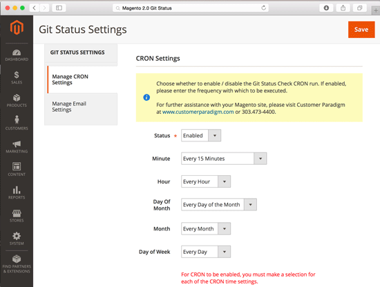 Day of the Week: You can run the Git Status Magento 2 Report each and every day, or just on specific days (such as Tuesdays).