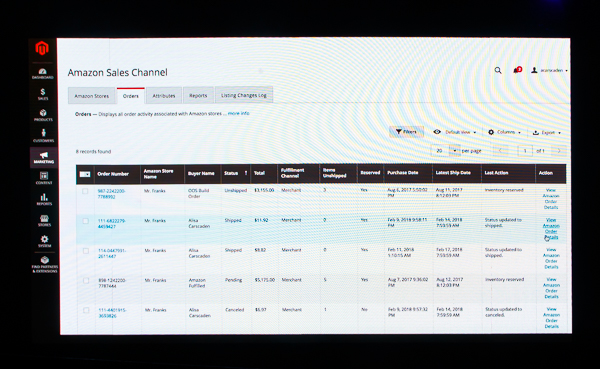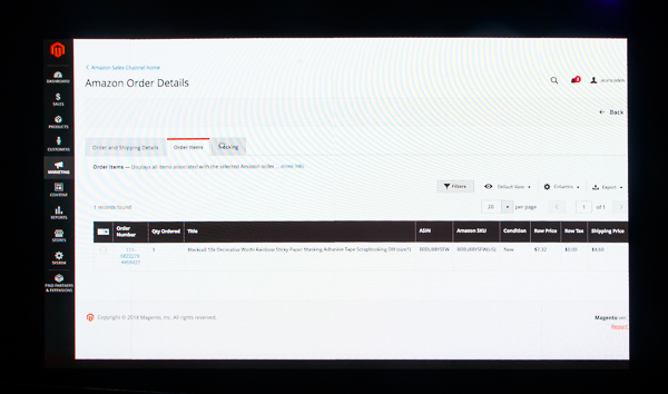 On the next screen, the system shows the orders that were placed on Amazon’s third party marketplace, but were brought into Magento.