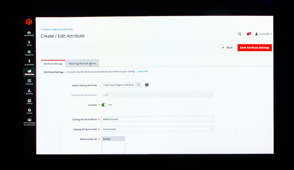 The Create / Edit Attribute section allows the Magento admin user to create new attributes in Magento to match up with the Amazon product information. In this case, Amazon Label is the attribute that will be imported into the catalog, when the product is imported from Amazon to Magento.