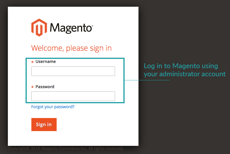 1) Log in to your Magento 2.0 store using your administrator account