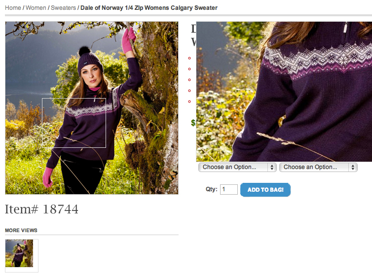 The product pages got some special treatments in the display of information such as the bulleted lists in the product description area, the magnification view, and the modifications to the info tabs below the image display.