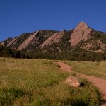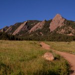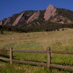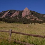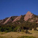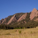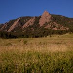 Enjoy these images from this morning, showcasing the Flatirons with a nice blue sky, green grass and red rocks.