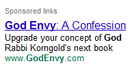 Keywords in Google Adwords – My goal: if someone searched for the book on Google, the Ad would come up, and they could click through to the GodEnvy.com website. My secondary goal: I knew that USA Today displays Google’s Advertising on their site, so I created an ad that might be displayed next to the article: